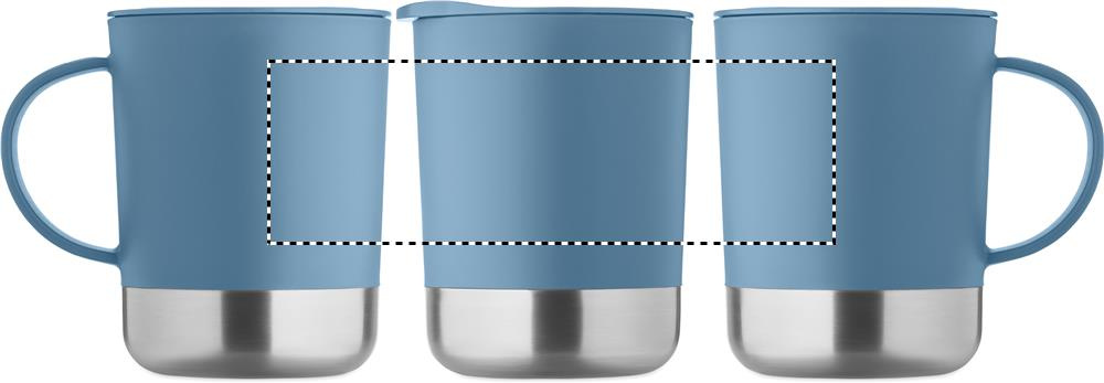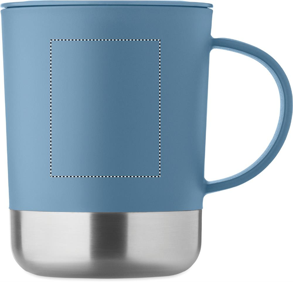 PP-muki, jossa on kierrätetystä ruostumattomasta teräksestä valmistettu pohja (90 % kierrätettyä ruostumatonta terästä ja 10 % ruostumatonta terästä) ja PP-liukukansi. Tilavuus: 300 ml.