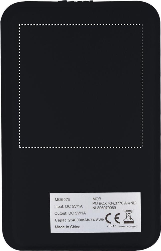 4000 mAh maitinimo blokas aliuminio ir saulės įkrovimo skydelyje. Talpa, skirta naudoti išmaniajame telefone, išėjimo srovė DC5V/1A. Komplekte yra indikatoriaus lemputė ir USB laidas su mikro USB kištuku.