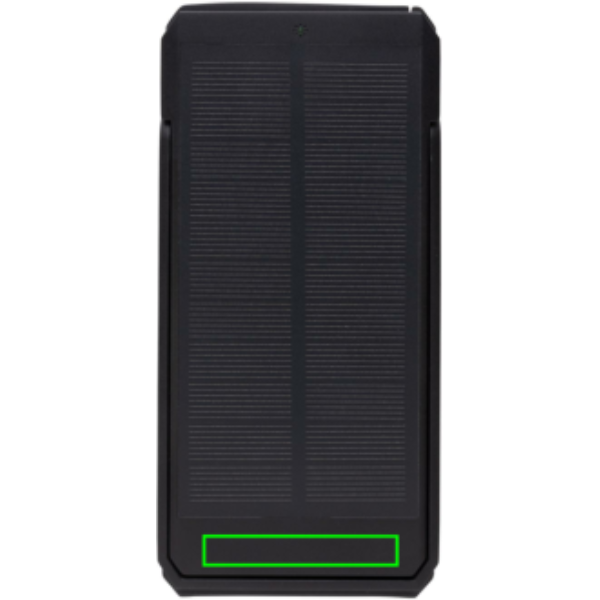 10 000 mAh saulės baterija, pagaminta iš RCS sertifikuoto perdirbto ABS. Bendras perdirbtas kiekis: 18% nuo bendro prekės svorio. RCS sertifikatas užtikrina visiškai sertifikuotą perdirbtų medžiagų tiekimo grandinę. Powerbank naudoja aukštos kokybės monokristalines saulės baterijas su 19% konversijos koeficientu. Mokesčio dydis priklauso nuo sąlygų. Su integruota stovo funkcija, leidžiančia naudoti saulės baterijas optimaliu kampu. Maitinimo bloke yra ilgai veikianti A klasės 10 000 mAh ličio baterija. Saulės įkrovimo greitis: 5V/200mA. C įvesties tipas: 5V/2A. Išvestis: USB A: 5V/2A C tipas: 5V/2A. Prekė ir priedai be PVC. Įskaitant RCS sertifikuotą perdirbtą TPE įkrovimo laidą. Supakuota į FSC® mišinio pakuotę. Registruotas dizainas®