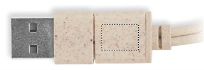 Kabeļu komplekts kviešu salmu/ABS korpusā ar bambusa augšdaļu un karabīni. Vāks kalpo kā tālruņa statīvs (horizontālā stāvoklī). Kabeļa ieeja 2in1 USB-C/A, izeja Type-C un 2in1 kontakti.