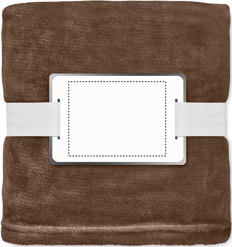 280 gr/m² RPET flaneļa vilnas sega, kas ietīta lentē un apdrukājamā kartē.