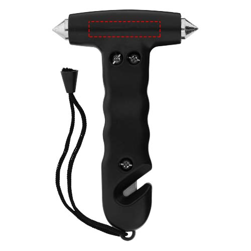 Аварийный молоток с ремешком на запястье и встроенным в ручку резаком. Два зазубренных молотка из закаленной стали для разбивания стекла и резак можно использовать в случае аварийной ситуации.
