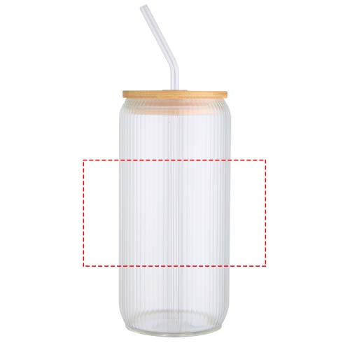 Банка из боросиликатного стекла со стеклянной трубочкой и бамбуковой крышкой. Банка имеет уникальный ребристый дизайн внутри и гладкую внешнюю поверхность, идеально подходящую для печати логотипа. Используемый бамбук выращивается в экологически чистых условиях с соблюдением принципов экологической и социальной ответственности. Поставляется в подарочной коробке из переработанного картона. Объем: 650 мл.