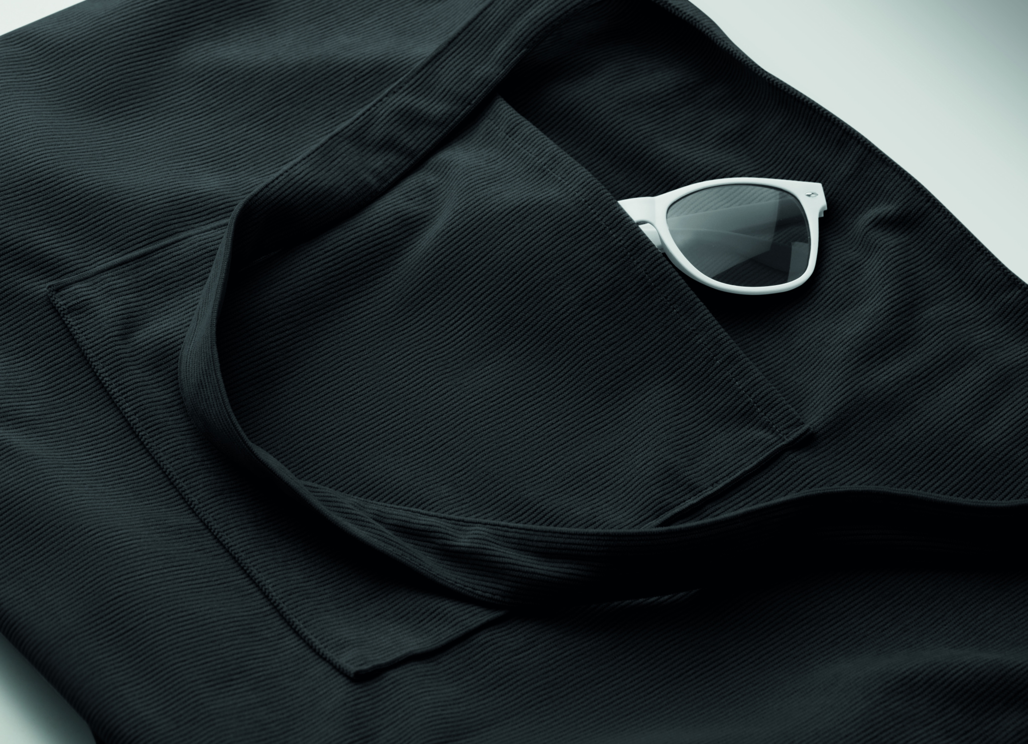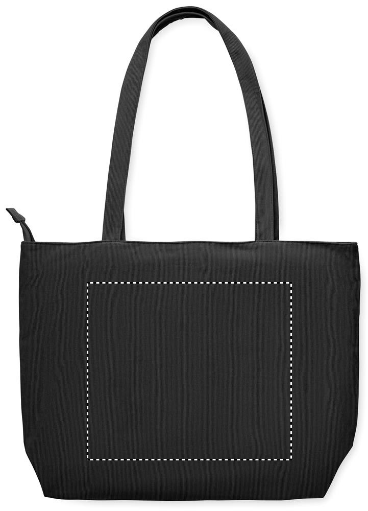 Large shopping/beach bag in polyester corduroy with top zipper closure, open front pocket and inner pocket. 220 gr/m².