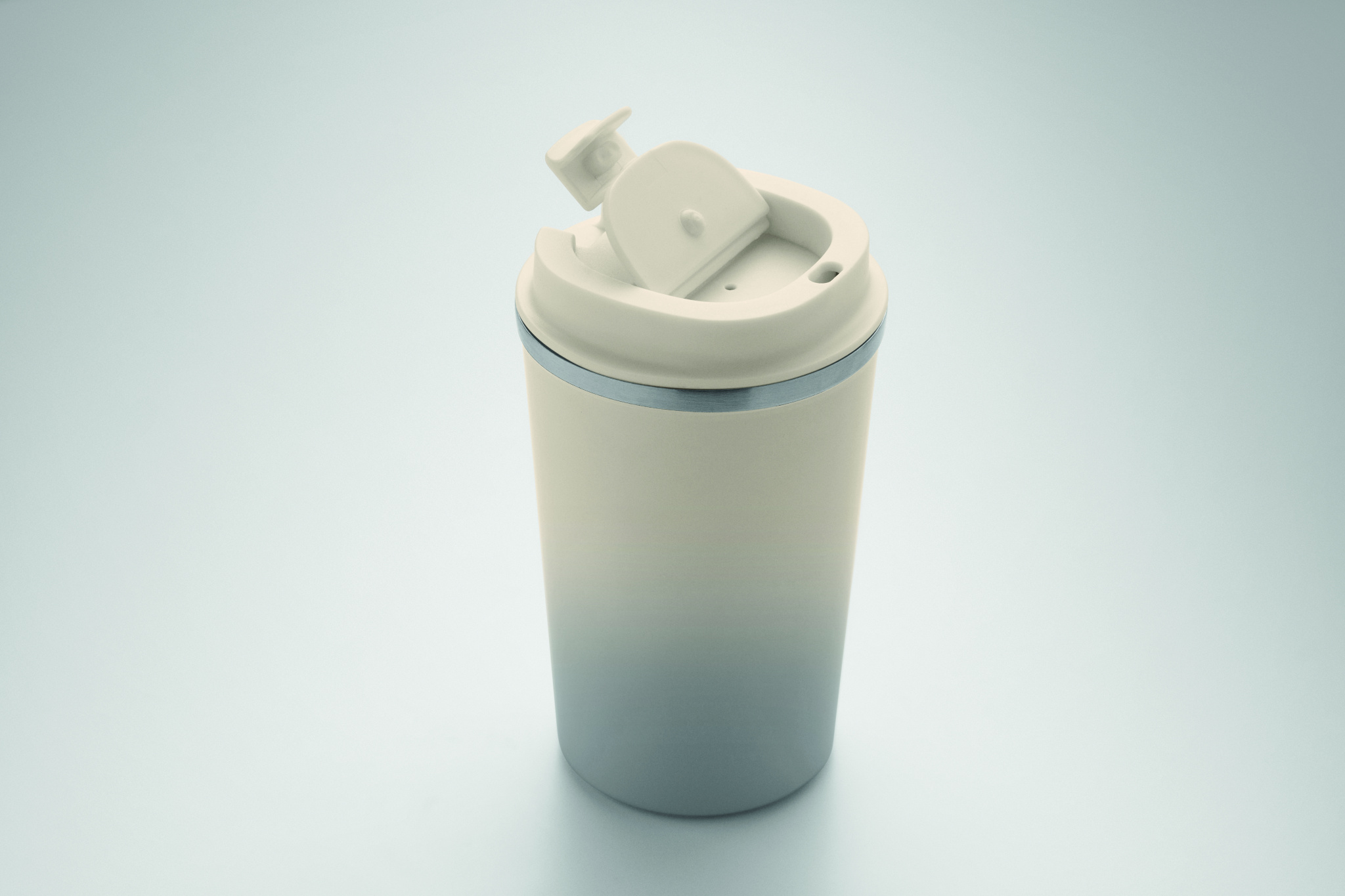 Double wall recycled stainless steel (90 % recycled stainless steel and 10% stainless steel) tumbler with PP lid. Capacity: 350 ml. Leak free.