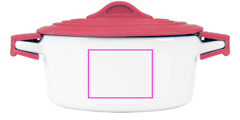 Фарфоровая кастрюля (подходит для посудомоечной машины, духовки и микроволновой печи), с термостойкими силиконовыми ручками (до 250 °C). Ваш логотип будет напечатан на кастрюле методом керамической термопереноса.