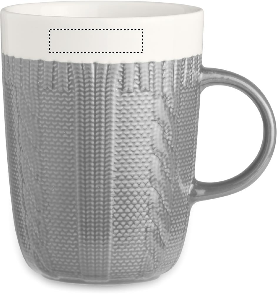 Керамическая кружка стилизованная под вязаное покрытие. Емкость: 310 мл. Поставляется в индивидуальной коробке.
