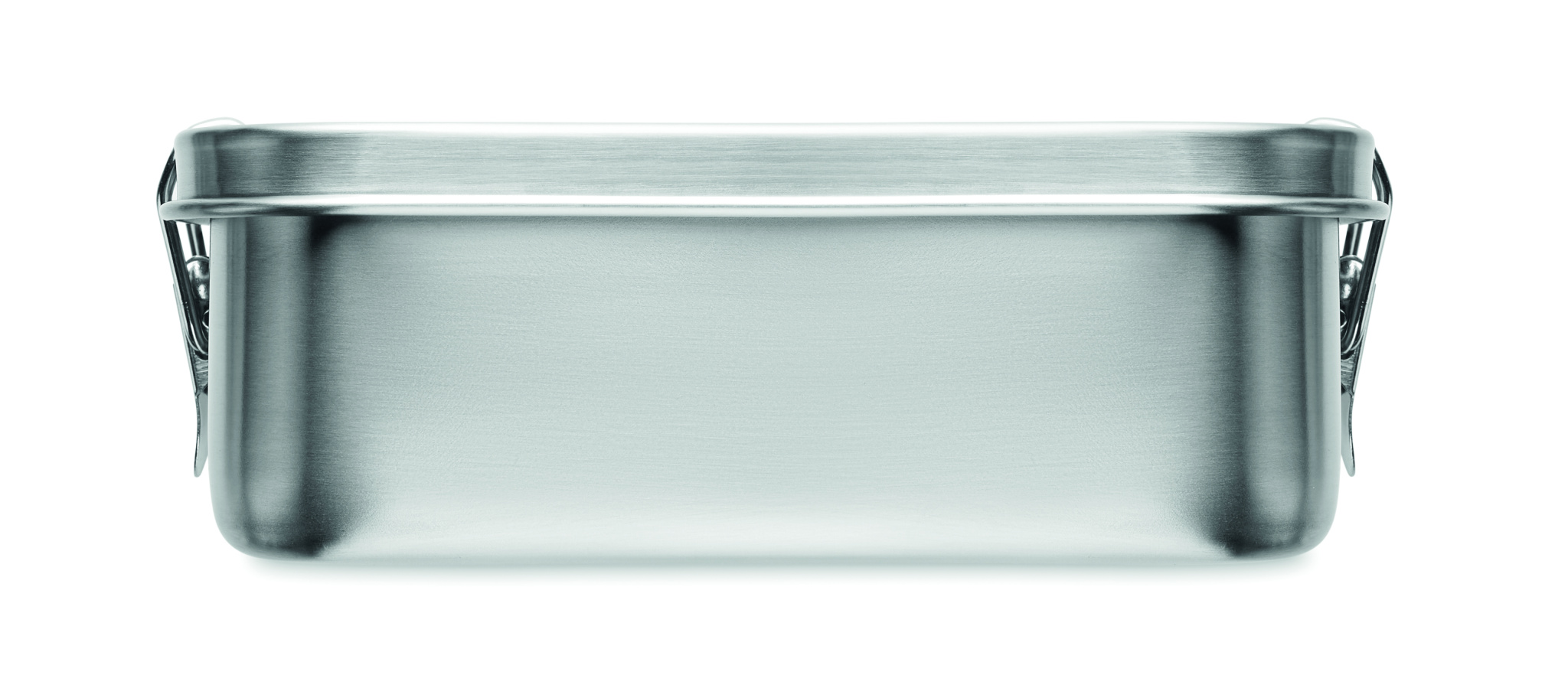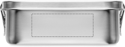 Recycled stainless steel (90 % recycled stainless steel and 10% stainless steel) lunch box with secure side buckles and round corners. Capacity: 750ml.