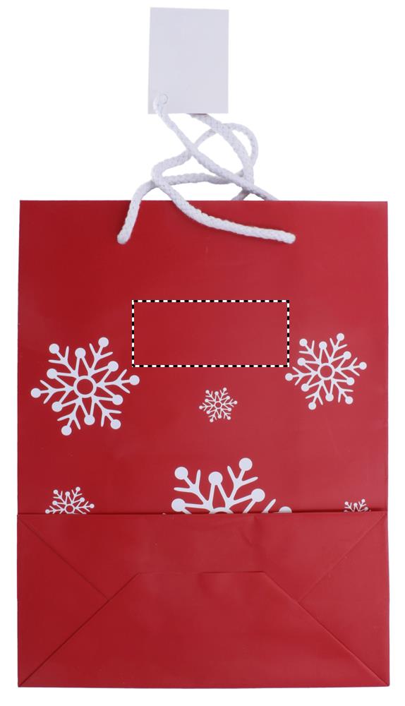 Подарочный пакет в новом новогоднем дизайне, украшенный снежинками. Средний размер.