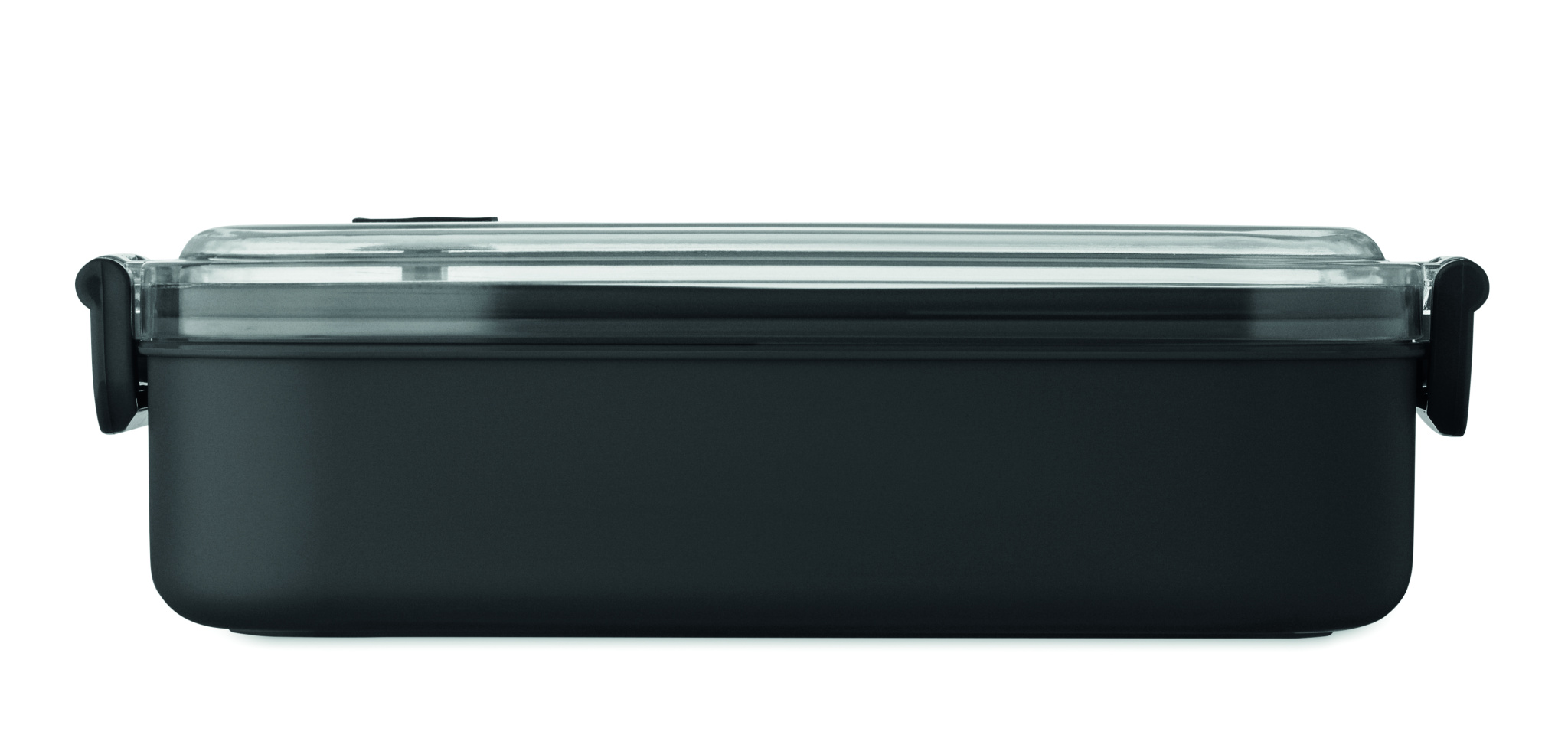 Lunch box made of PP with additional recycled stainless steel inner layer. Airtight AS lid that keeps food fresh and secure during transport. Capacity 750 ml without tray and 650 ml with tray.