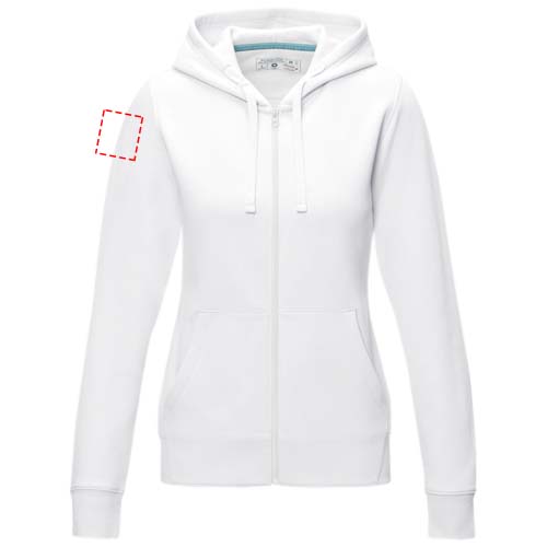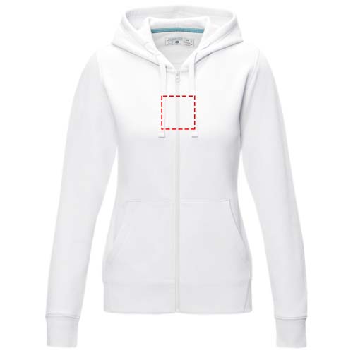 The Ruby women's organic recycled full zip hoodie – this hoodie showcases a blend of eco-conscious features that redefine modern fashion. With a soft brushed interior, it ensures a cozy feel. Made from a 280 g/m² blend of organic cotton and recycled polyester. This hoodie is designed with a fitted shape for a feminine look.