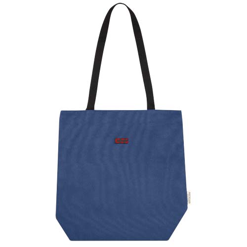 Эко-сумка изготовлена из переработанного холста, сертифицированного по стандарту GRS, и имеет подкладку из переработанного ПЭТ-пластика, сертифицированного по стандарту GRS. Универсальная эко-сумка имеет мягкое отделение для ноутбука с диагональю 15 дюймов и два карманных рукава внутри для телефона, кошелька или аксессуаров, а также удобную застежку на кнопке для открытия и удобные плетеные ручки из хлопка. Декоративная металлическая пластина может придать логотипу сияние благодаря утонченному матовому покрытию.