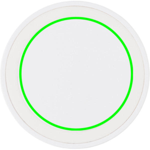 Trådlös laddare med silikonring som håller telefonen på plats. LED-lampan indikerar att enheten laddar. Kompatibel med alla QI-aktiverade enheter som senaste generationen Android, iPhone 8 och upp. Input: 5V/1,5A. Trådlös output: 5V/1A, 5W