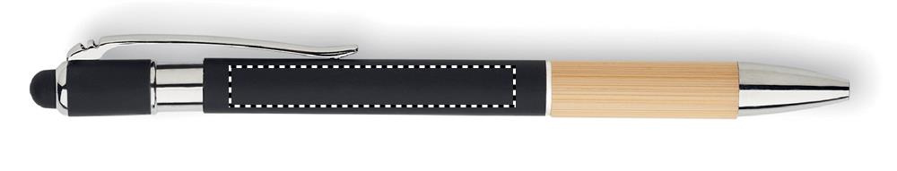 A5 anteckningsblock med hårt omslag i 600D RPET. Pärm med telefonhållare och elastiskt band på framsidan samt pennögla. inklusive aluminiumpenna med bambudetalj (blått bläck). Inbunden med 160 linjerade sidor av återvunnet papper (80 ark) med sidomarkör. Ficka på insidan pärm bak.