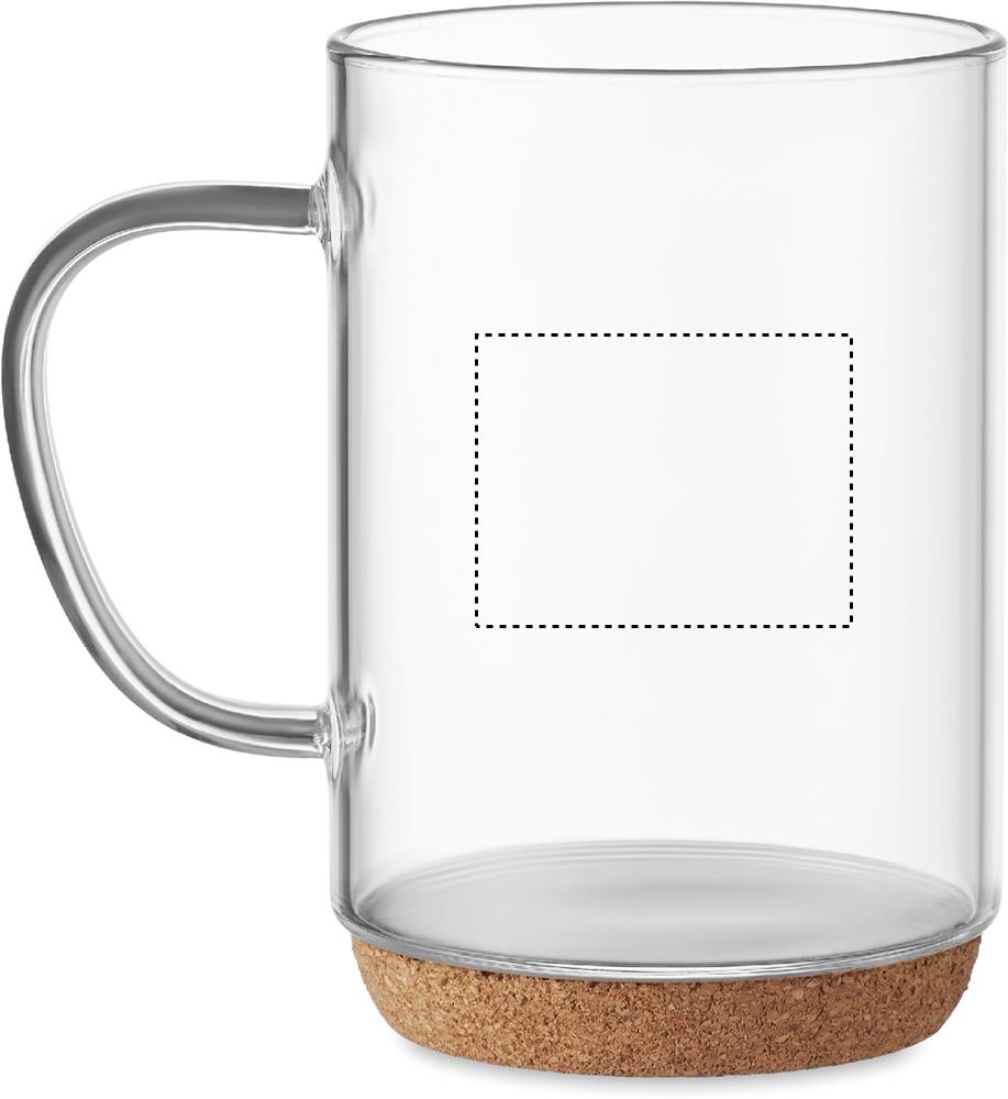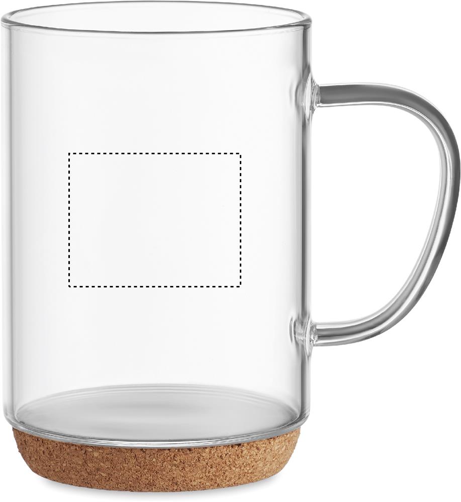 Mugg av borosilikatglas med korkbotten. Endast handdisk. Kapacitet: 400 ml.