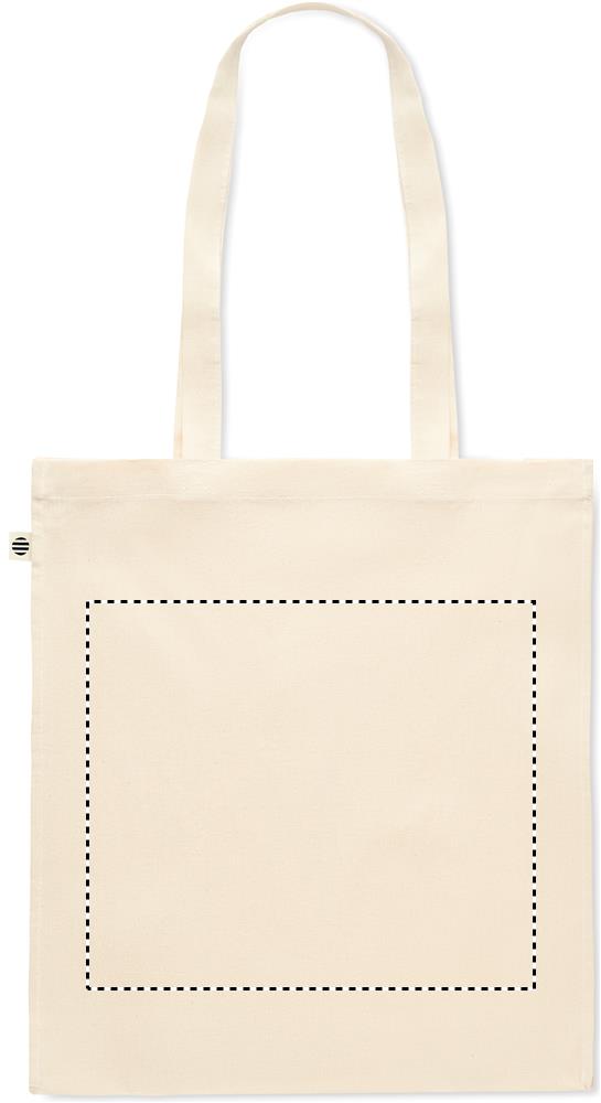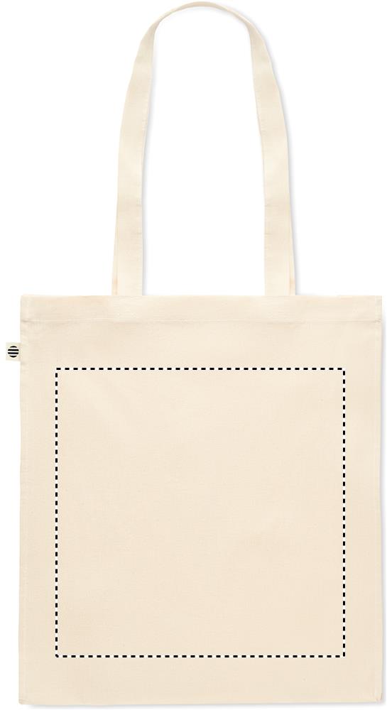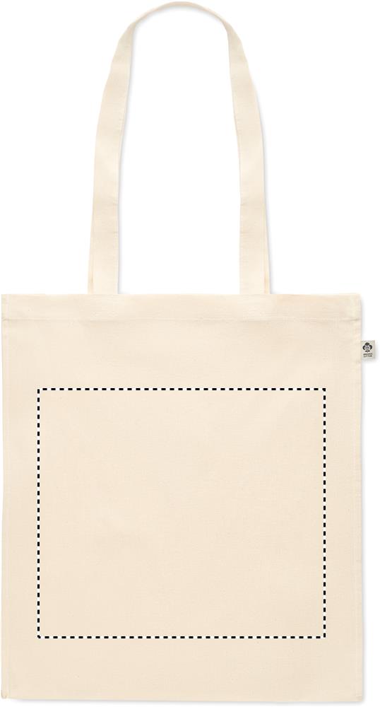 Kasse i ekologisk bomull medbälg och långa handtag. 140 gr/m².