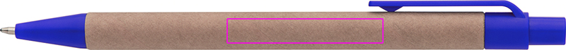 Kulspetspenna av återvunnet papper och färgade plastapplikationer, blå skrift. Din logotyp är tryckt till höger om klippet.