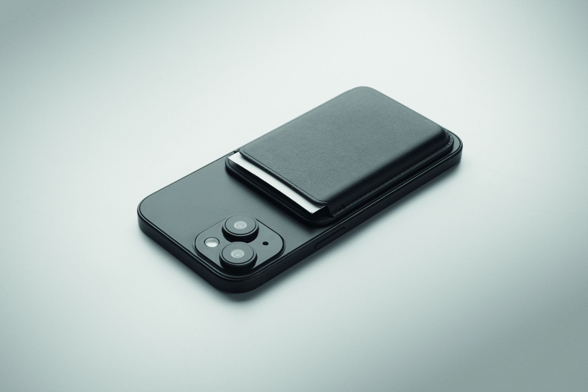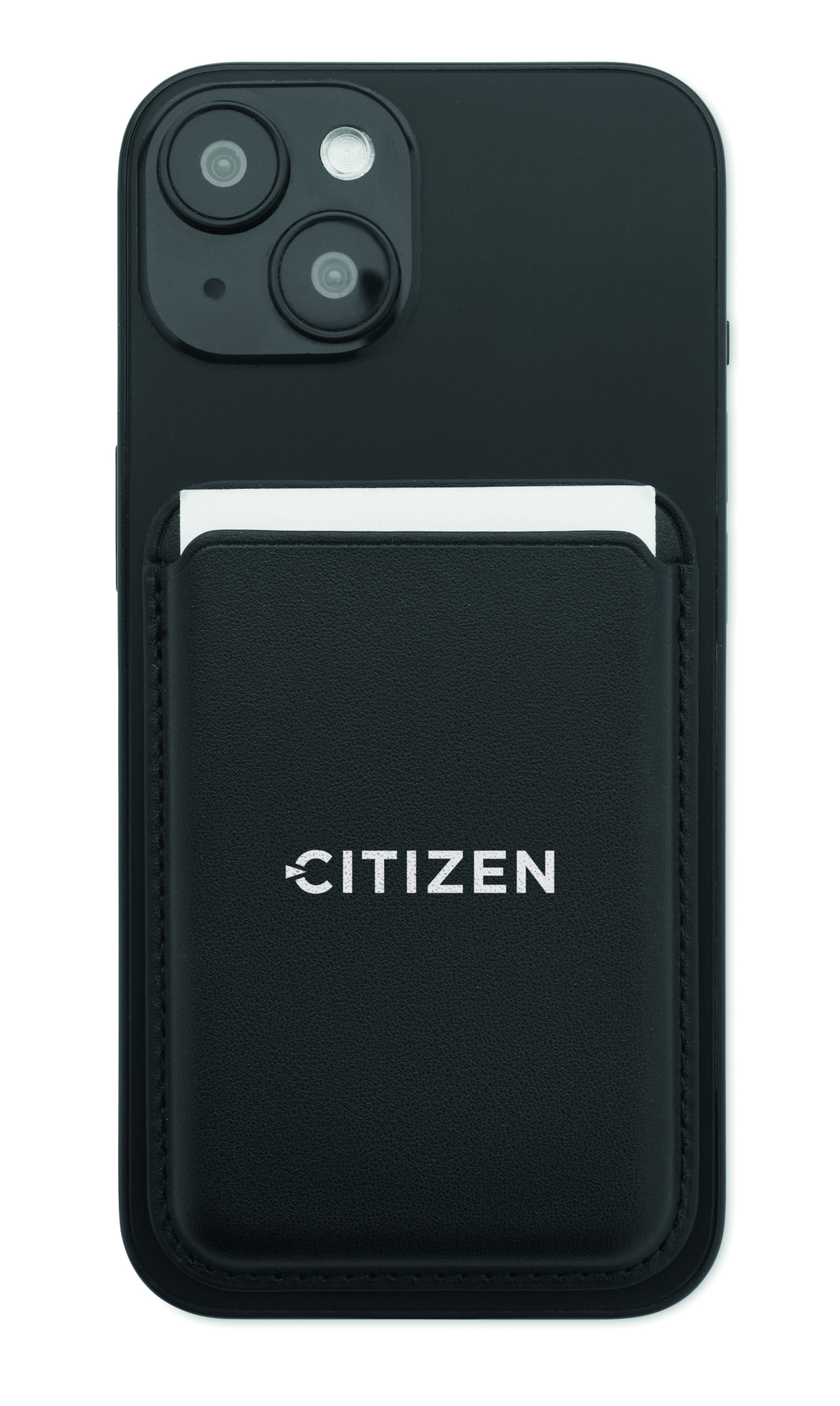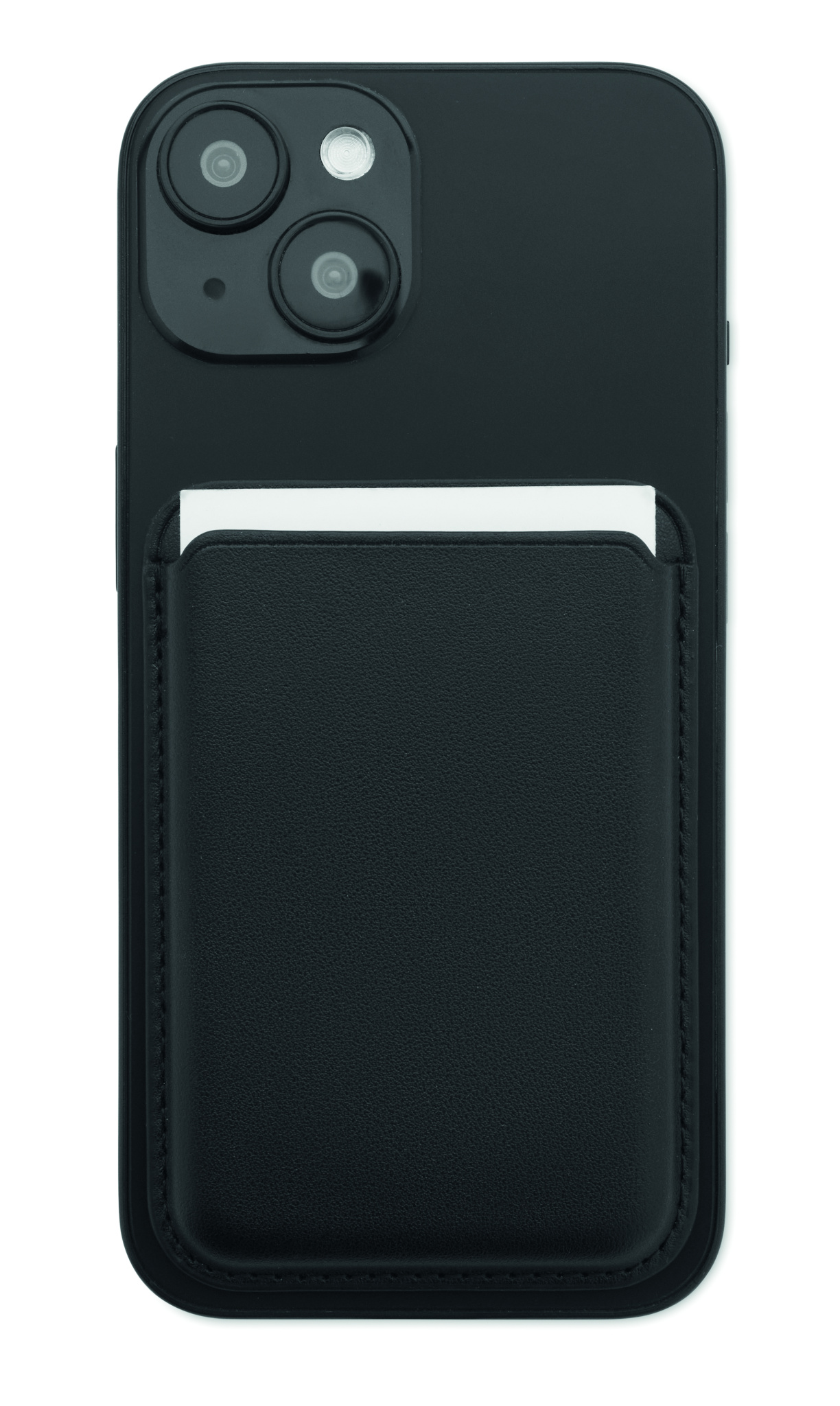 Magnetisk kreditkortshållare (för 3 kort) i PU-läder att fästa på telefonen. Den innehåller en extra metallring.