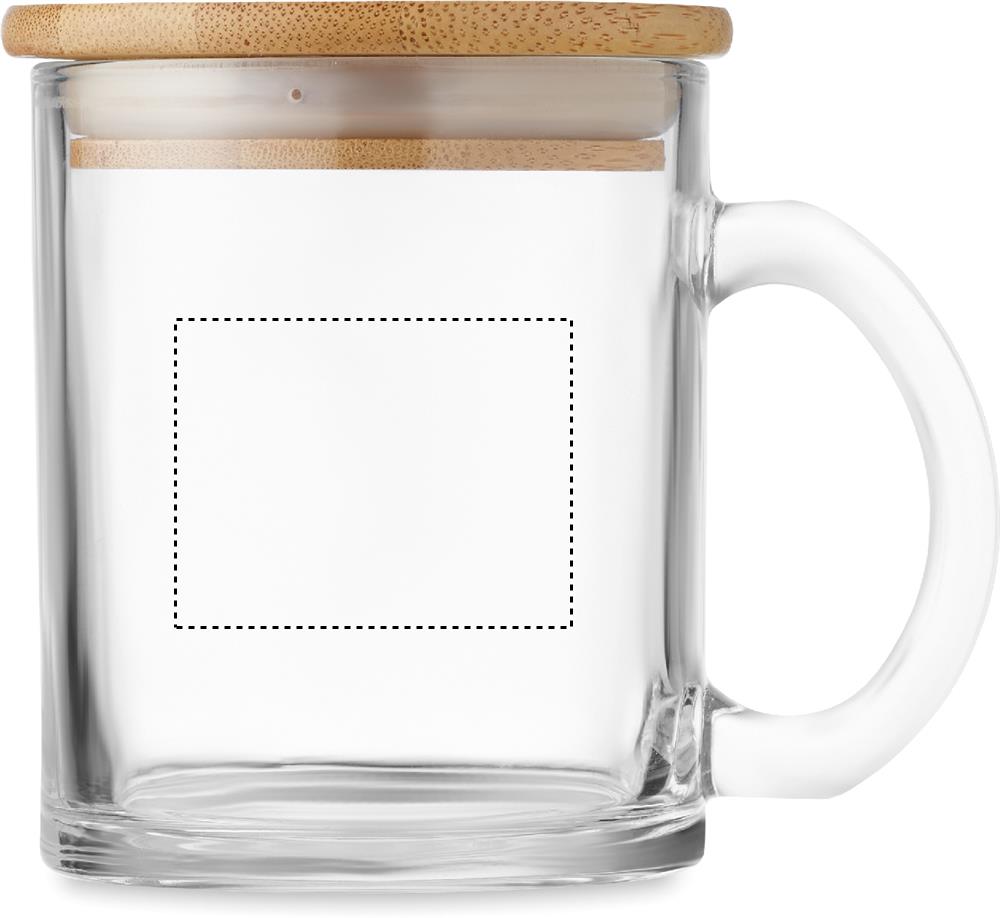 Mugg av återvunnet glas med lock av bambu. Kapacitet: 300 ml.