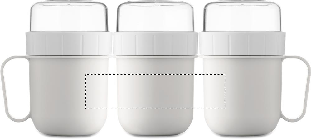 Frukostmugg för människor i farten i PP och PS. Består av 2 individuella behållare för att hålla ingredienserna åtskilda. Volym: 450 ml och 160 ml. Läckagefri.
