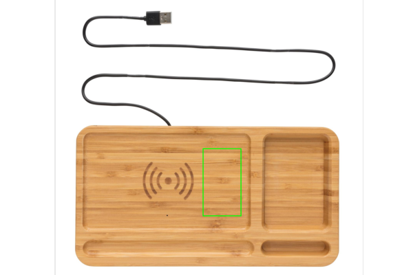 Logotrade reklamprodukter bild: Skrivbordsorganisatör i bambu 10W trådlös laddare