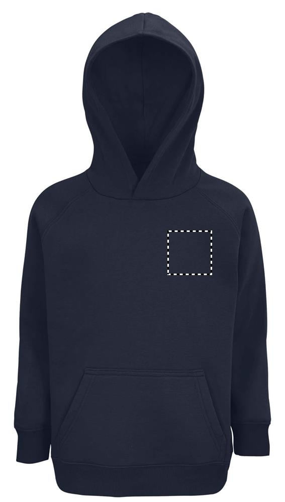 SOL'S STELLAR KIDS, HUVTRÖJA FÖR BARN, 80 % ekologiskt odlad bomull - 20 % återvunnen polyester, 3 garn , Borstat foder , Utsida: 100 % ekologisk bomull FLEECE 280, Skuren och sydd, Raglanärmar, 2x2 ribbade muddar i ärmslut och nederkant, Halvmåneformad innerkrage, Halstejp, Huva med trikåfoder för matchande storlekar, se storlekstabellen i avsnittet om produktdokumentation.