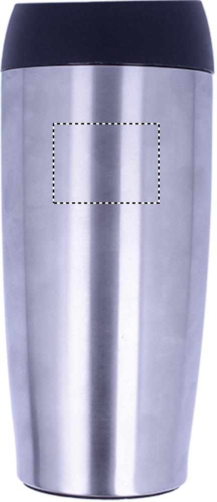 Termosmugg i rostfritt stål med dubblevägg som rymmer 350 ml, metall invändigt och utvändigt med lock PP plast. Läckagefri med säkerhetsspärr på gör den perfekt att lägga i ryggsäcken eller handväskan när den inte används. Läckagefritt. Laser är enda diskmaskinsäkra märkmetoden.