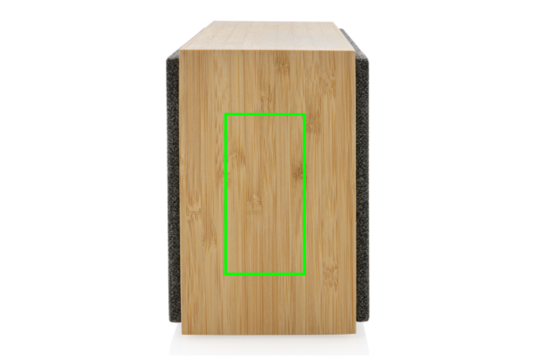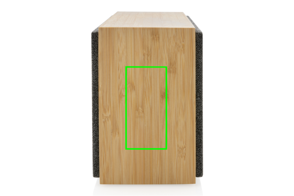 Lyxig 20W högtalare med klart ljud och en stark bas. Högtalaren är tillverkad av FSC 100% bambu. Plastkomponenterna är tillverkade av RCS (Recycled Claim Standard) certifierad återvunnen ABS. Totalt återvunnet innehåll: 17% baserat på total produktvikt. RCS certifiering säkerställer en helt certifierad leveranskedja av de återvunna materialen. Med BT 5.1 för smidig anslutning, upp till 10 meter räckvidd och låg energikonsumption. Batteriet på 4.000 mAh ger en speltid på upp till 6 timmar och kan laddas fullt inom 3 timmar. Med mikrofon/svarsfunktion för att besvara inkommande (video)samtal. Levereras i FSC mix kraft förpackning. Laddningskabel i RCS certifierad TPE medföljer.